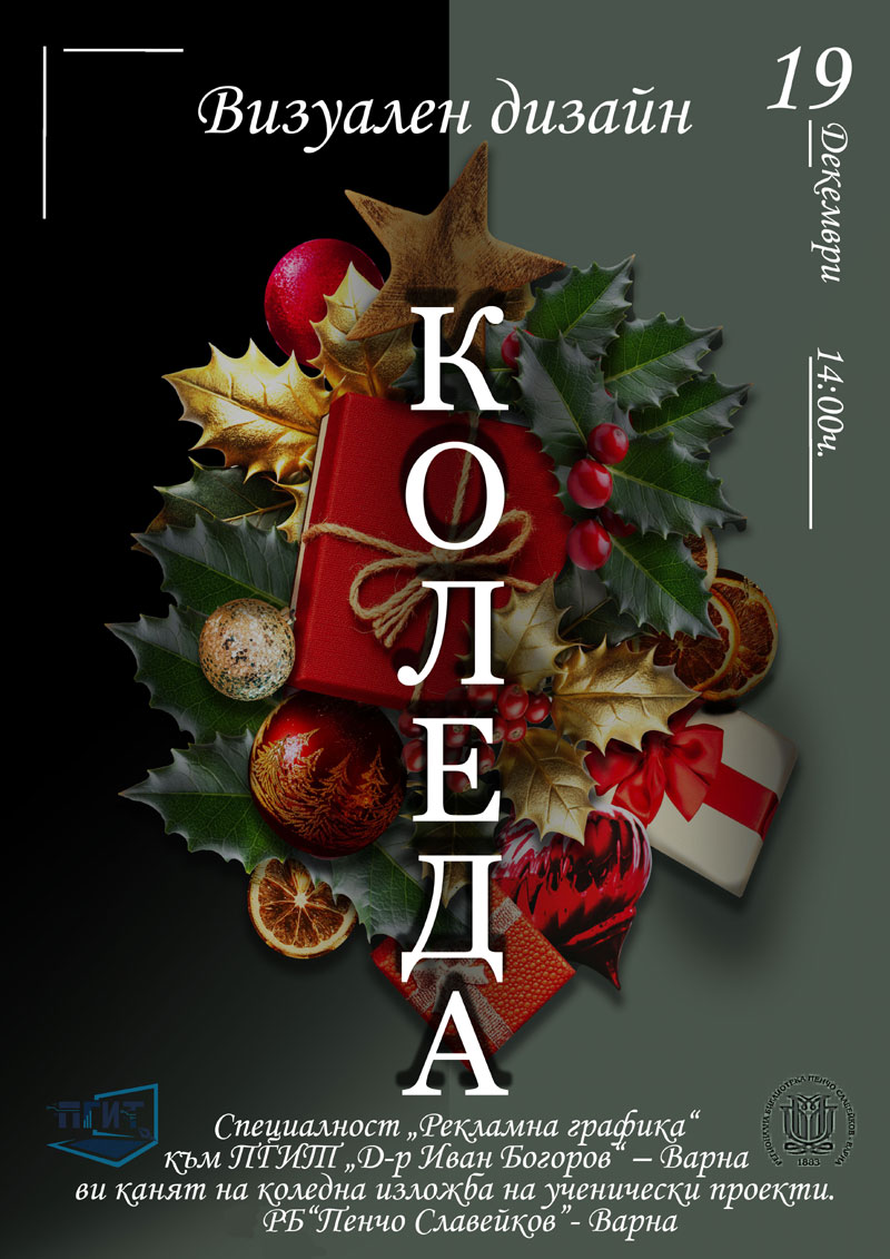 Отдел Изкуство, 19 декември 2025 г., 14:00 ч. “Визуален дизайн: Коледа” Изложба на ученици от специалност “Рекламна графика” при ПГИТ “Иван Богоров” – Варна