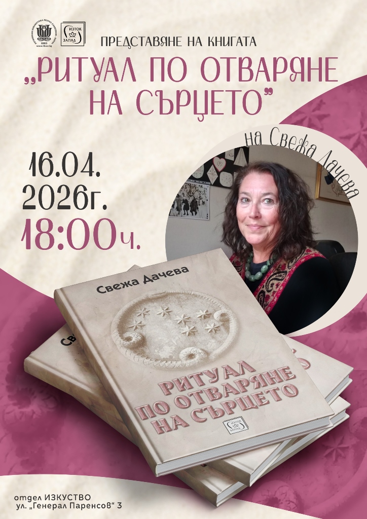 Представяне на книгата “Ритуал по отваряне на сърцето” 16 април 2026 Новини, Представяне на автори и книгиBy Temenuga Kalcheva07/04/2026