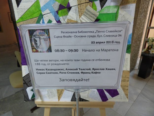 Маратон на четящите хора в Регионална библиотека “Пенчо Славейков”, 23 април 2018 г.marathon2018By Temenuga Kalcheva24/04/2018