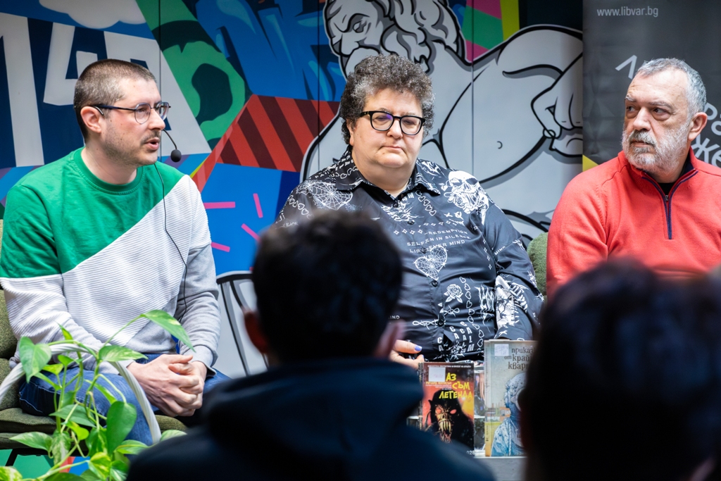 Дистопични хорър вселени, дискусия с писателката Елена Павлова, преводачката Нева Мичева и художника Кирил Златков